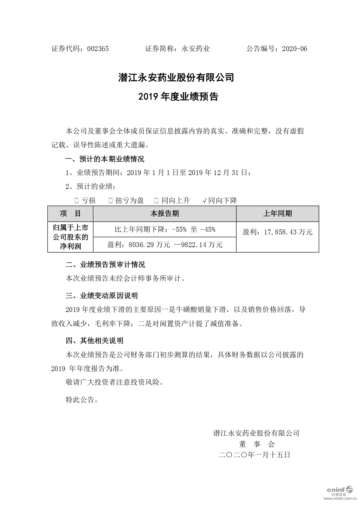 2019年度業(yè)績預(yù)告