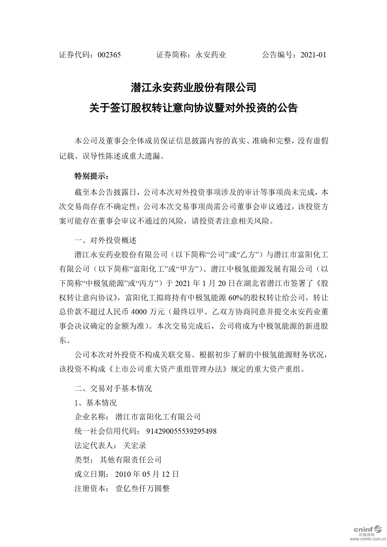 關(guān)于簽訂股權(quán)轉(zhuǎn)讓意向協(xié)議暨對(duì)外投資的公告