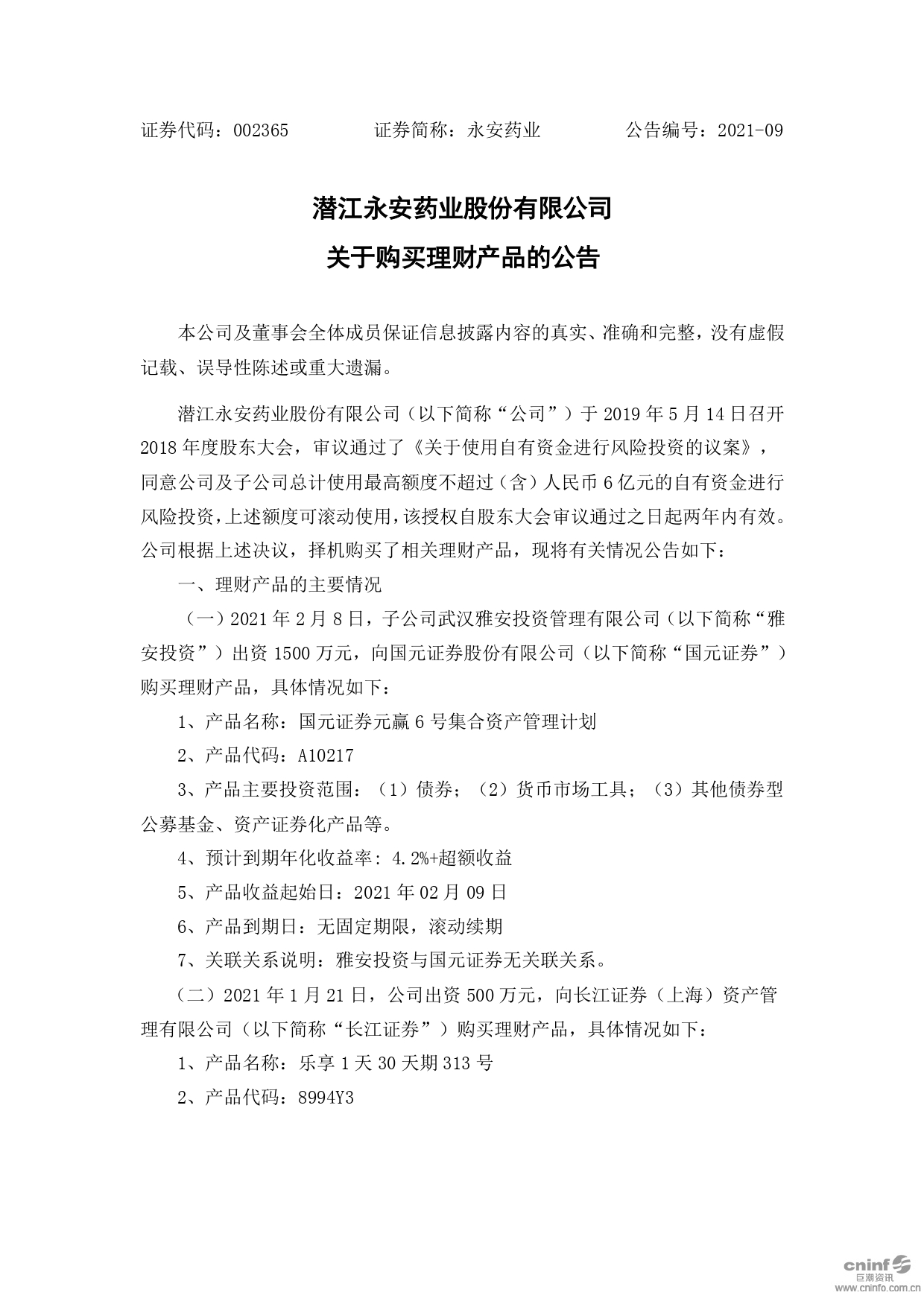 潛江永安藥業(yè)股份有限公司